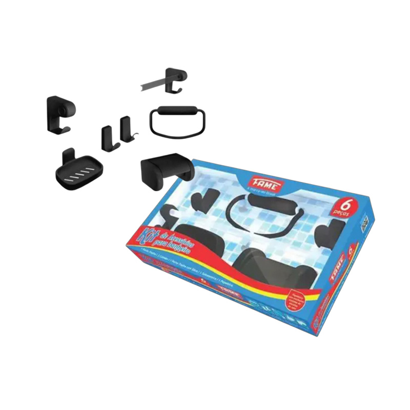 Kit acessório Banheiro Preto 6 peças – Fame